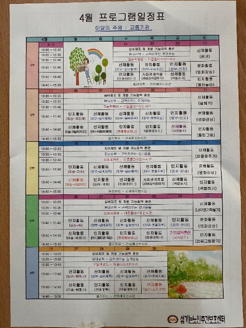 안녕하세요. 4월 프로그램 일정표 올려드립니다. 오늘도 좋은 하루 보내세요♡ |