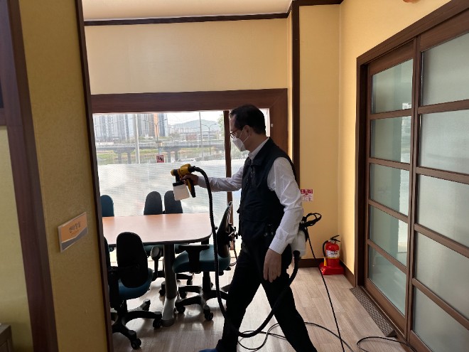 안녕하세요. 오늘 소독 업체에서 방문하여 센터 전체 소독 진행하였습니다. 감사합니다. |